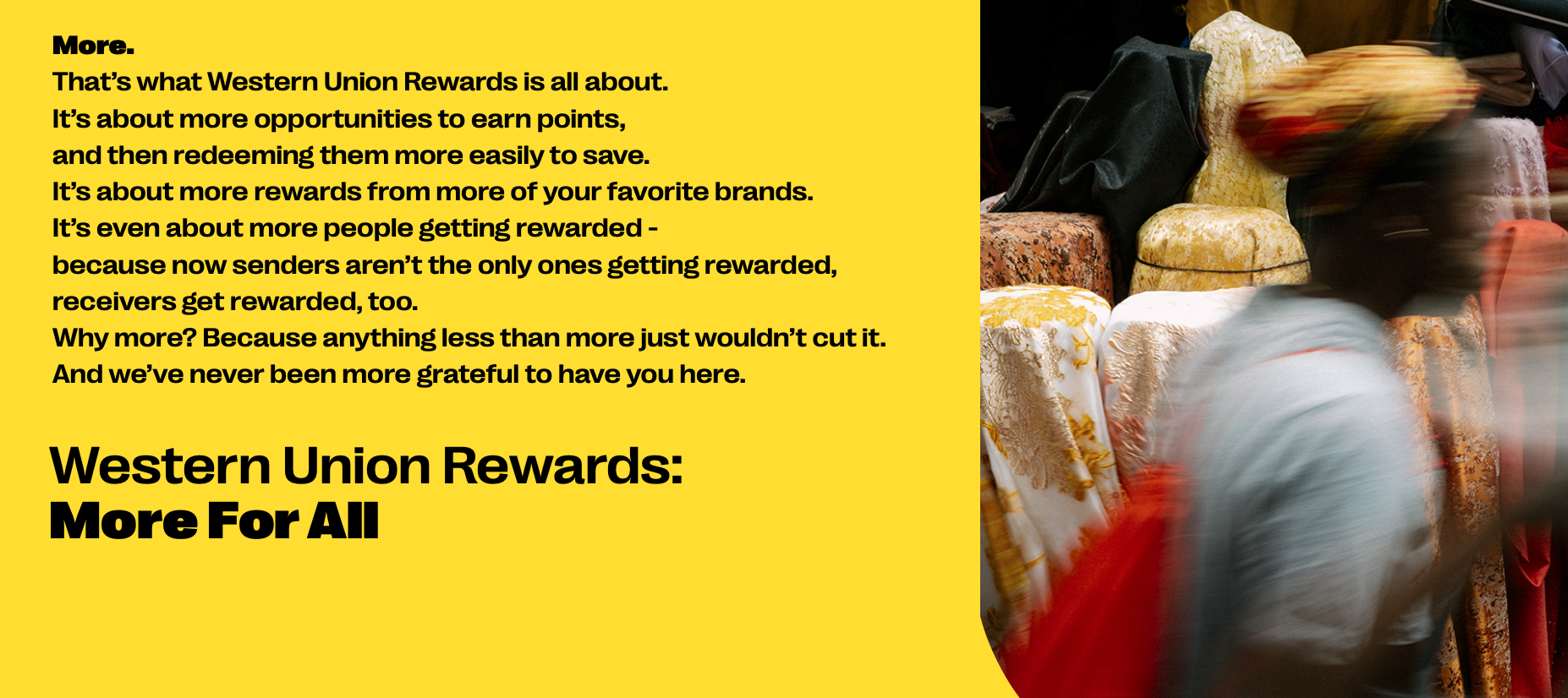 Now that we had a name, it was time to position what Western Union Rewards means for our loyal customers and to introduce the first loyalty program that not only rewards the people sending the money, but the people receiving it, as well.
